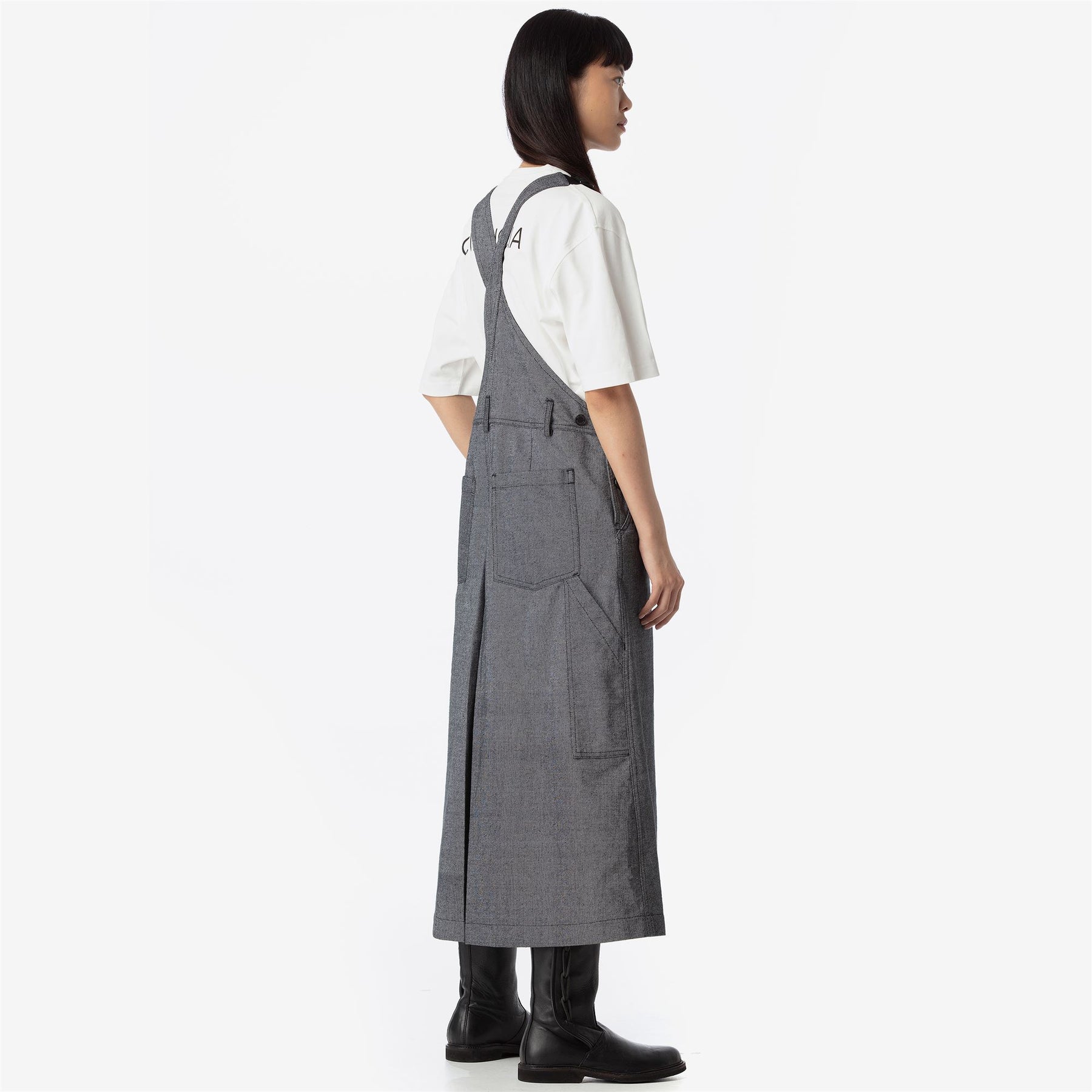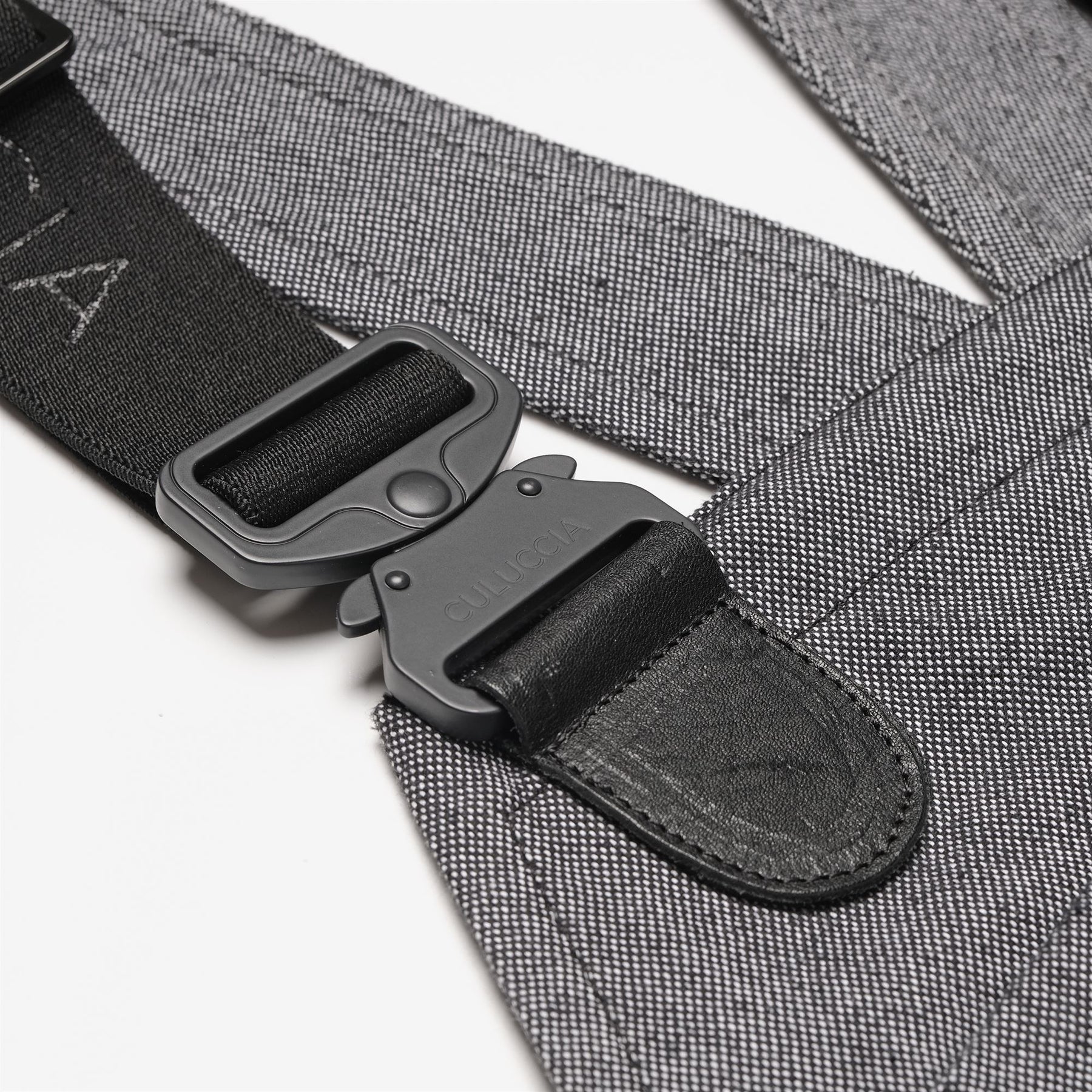 From a workwear staple to a symbol of casual style, the history of overalls continues and evolves to reflect the philosophy of the Culuccia® brand. This model features a feminine design with wide culotte-style pants. Made from Panno Pranu, a pure cotton fabric with a play of weave and warp that creates a grainy graphic effect. Regular fit. The bib has a functional pocket, and the adjustable elastic straps allow for a customized fit. The garment is personalized internally with a QR label woven on a jacquard loom, offering deeper insight into the project and the identity of the piece.